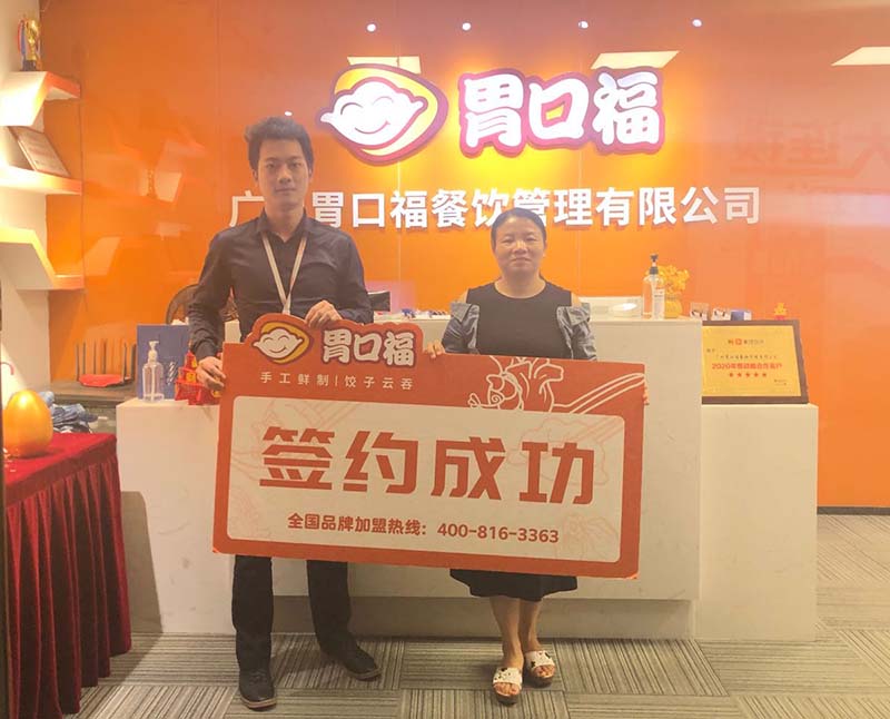 喜報!2020年10月26日,來自廣州的梁先生成功簽約加盟胃口福餃子...